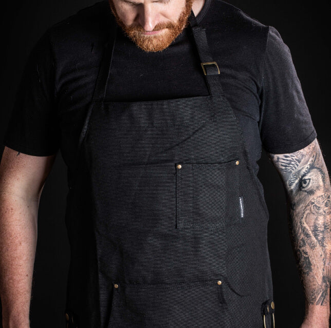 Our apron is made from 320 GSM Heavy Duty 100% Cotton Canvas. It’s strong, tear-proof, wear resistant, and machine washable, all while being insanely comfortable.
