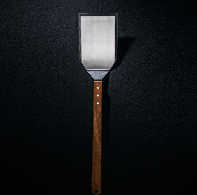 The straight beveled edge gives full contact with the surface. This helps loosen even the toughest food stuck to your grill or griddle. Tapered single-piece hardwood handle for comfortable grip and heat resistance.