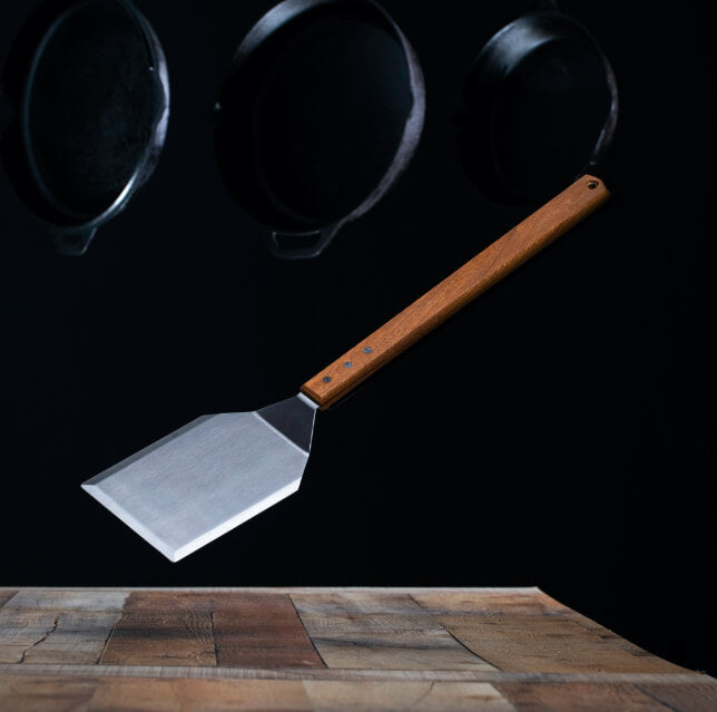 This professional grill spatula is tailored for perfection. The beveled edge makes it the best BBQ spatula to tackle tough meals. Whether at the griddle or BBQ, its robust design transforms cooking into an effortless experience. The heavy-duty BBQ spatula construction ensures years of reliable use.