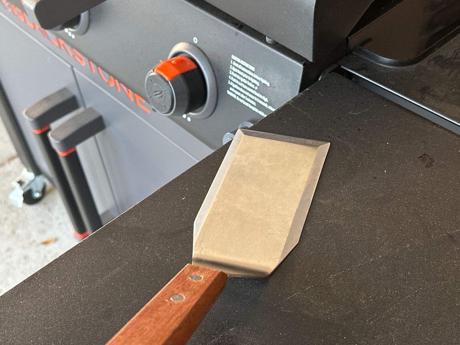 The hardwood handle let’s you handle the spatula without it getting too hot or melting. The heavy gauge steel eliminates flex, so you can throw down some serious pressure for the perfect smash burger, or to scrape ALL the food in the skillet.