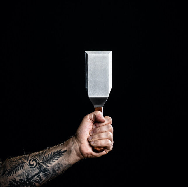 Designed with a stub-tang handle, the spatula is front-weighted, so it rests flat on the blade when you’re not flipping steaks and smashing burgers. Pro Tip: Rest the blade of your MK21680 on the hot surface for a few seconds to prevent smashburges from sticking to the spatula post-smash.