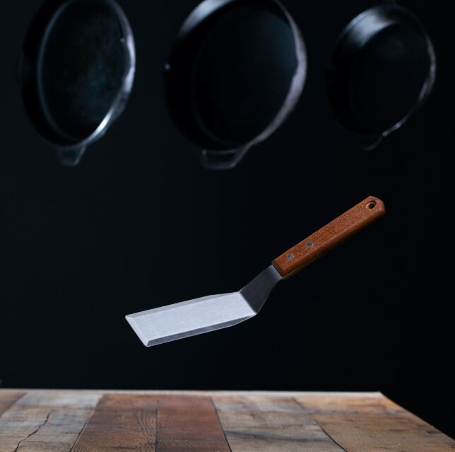 A precision beveled edge ensures you get every flavorful bit of your seared steak or smashed burger. The flat scraping edge gives full contact for maximum food release and even skillet surface leveling.