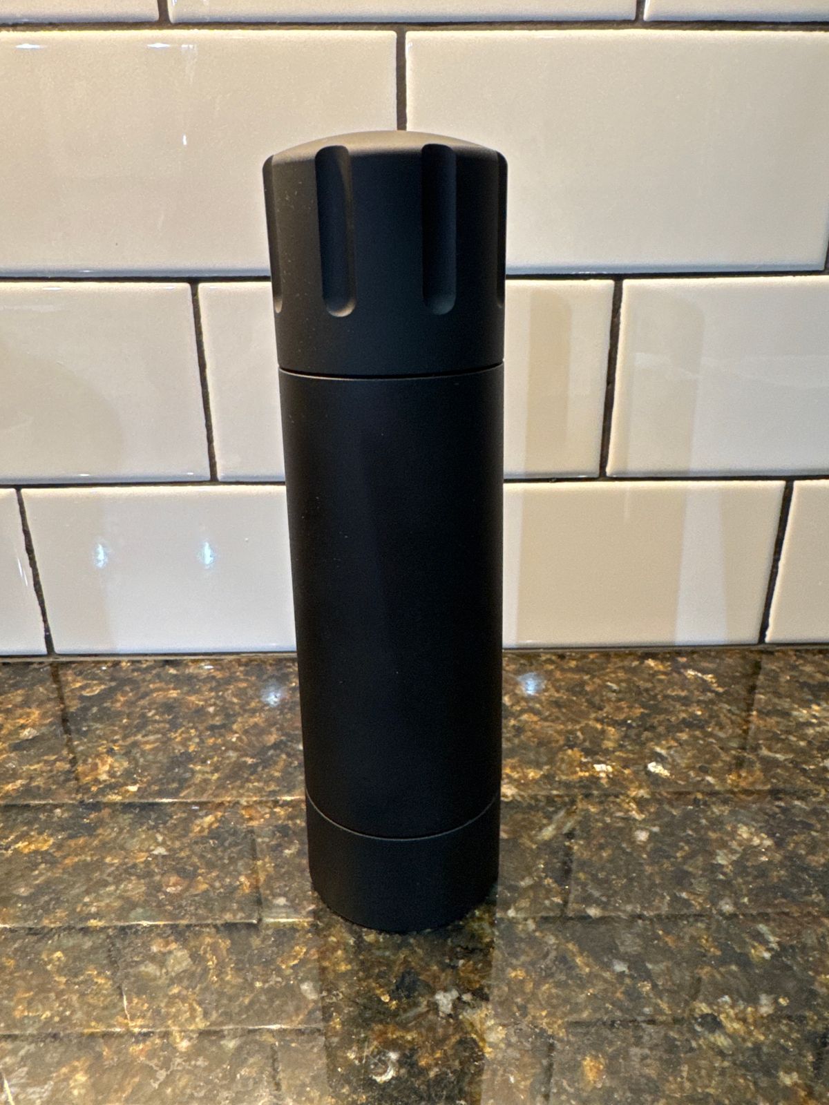 Plus the Pepper Cannon is so easy to refill that it's no longer a chore. Pop the top, pour in fresh peppercorns, and click the top back on. No need to remove, replace, and recalibrate the Pepper Cannon just to refill it.
